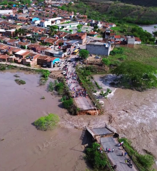 A ponte localizada em um dos acessos à cidade de Calçado, no Agreste Meridional, cedeu nas primeiras horas da manhã desta sexta-feira (27), após as fortes chuvas que atingem a região. As informações apontam que a estrutura não suportou o grande volume de água acumulado nas últimas horas.